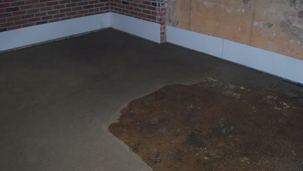 Before - Outside pad, after epoxy patching, and the broadcasting of sand to excess, into receiver coat was completed.