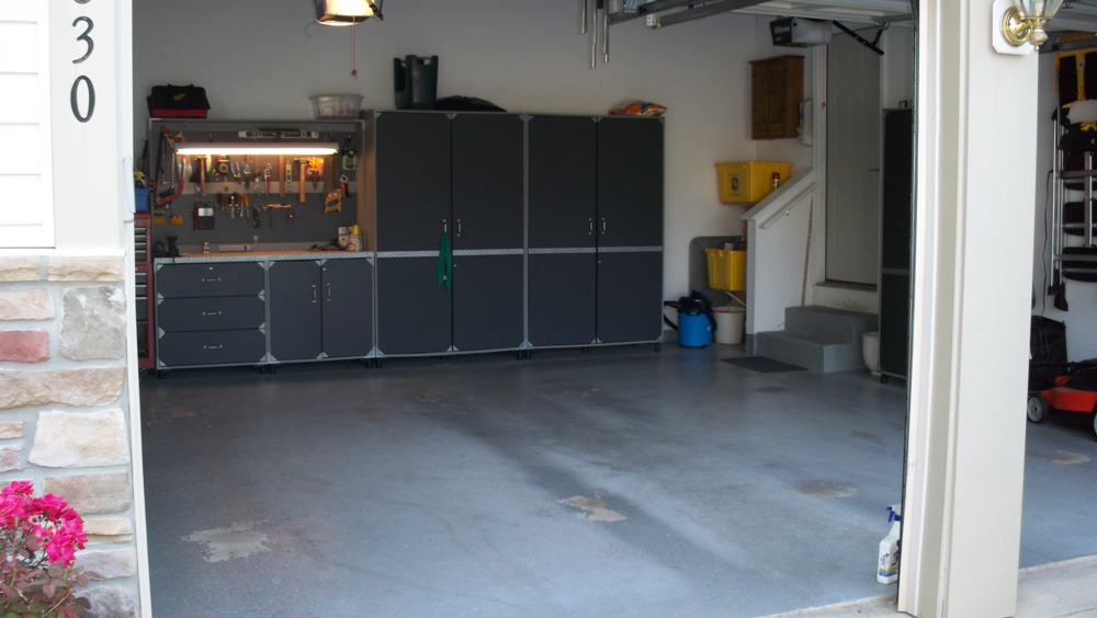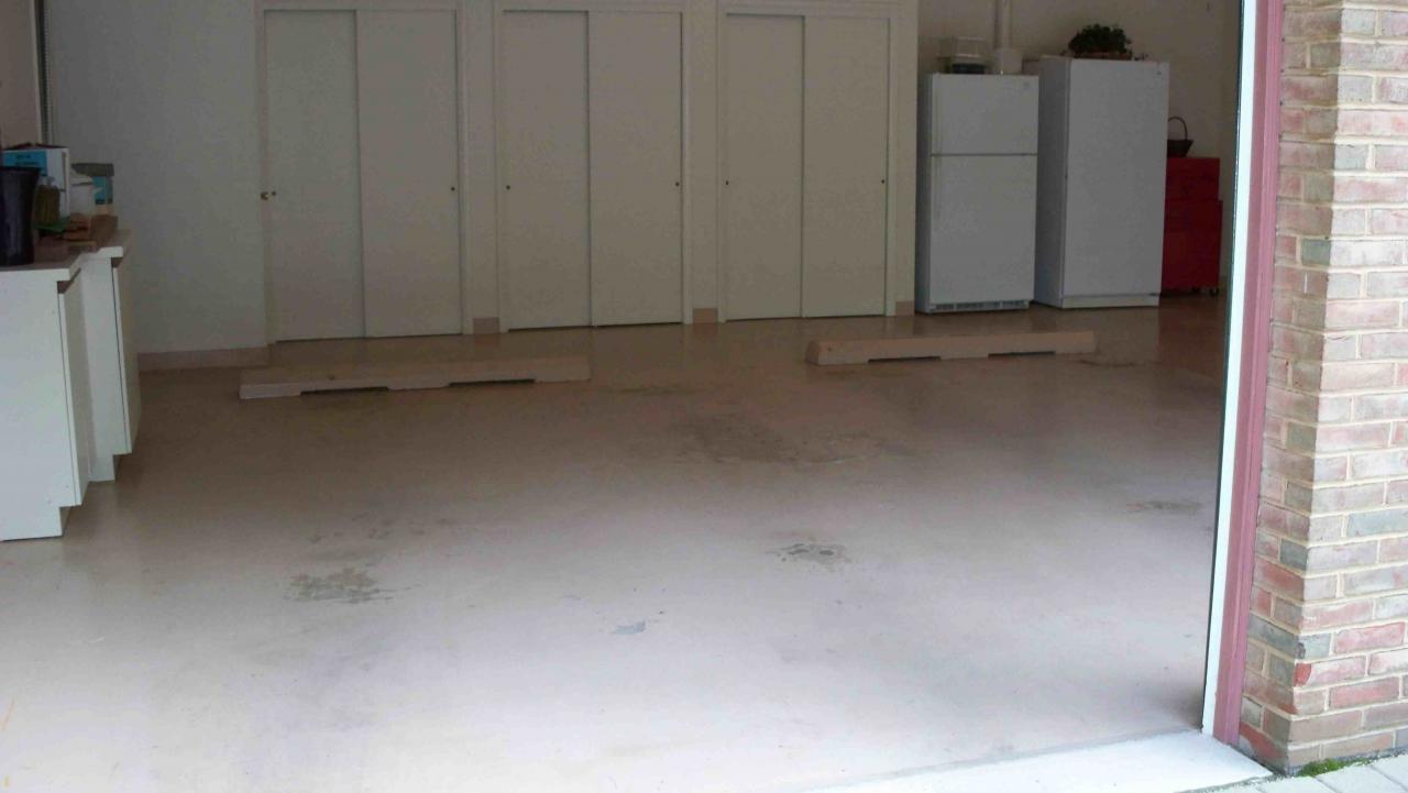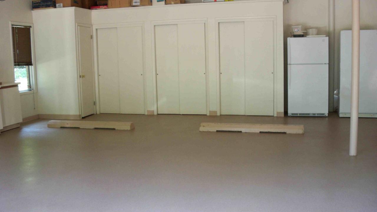 Before - Hot tire peel-off of a water based epoxy “flake” system. Always the first place to show wear is under your tires. Thin mil flake systems are prone to this problem, plus they are not slip resistant, when wet.
