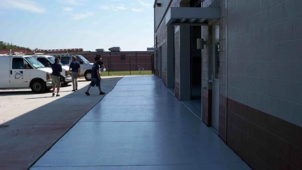 After - Finished textured surface with 65 mil solid color epoxy coating. Aluminum oxide is broadcast into the chemical resistant urethane top coat, for added slip resistance.