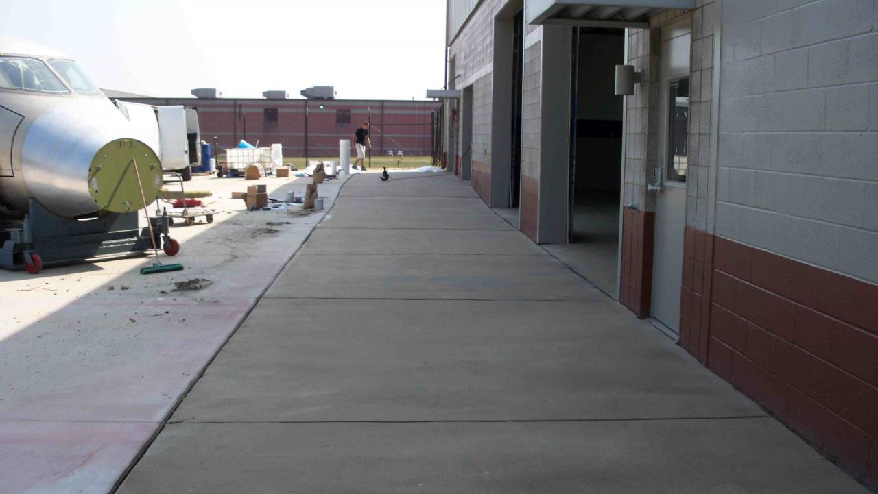 After - Finished 65 mil MBQ 101 broadcast quartz floor coating system will resist hot tire peel-off due to its thickness and texture. The texture allows for just enough air flow under your tires to eliminate this problem.