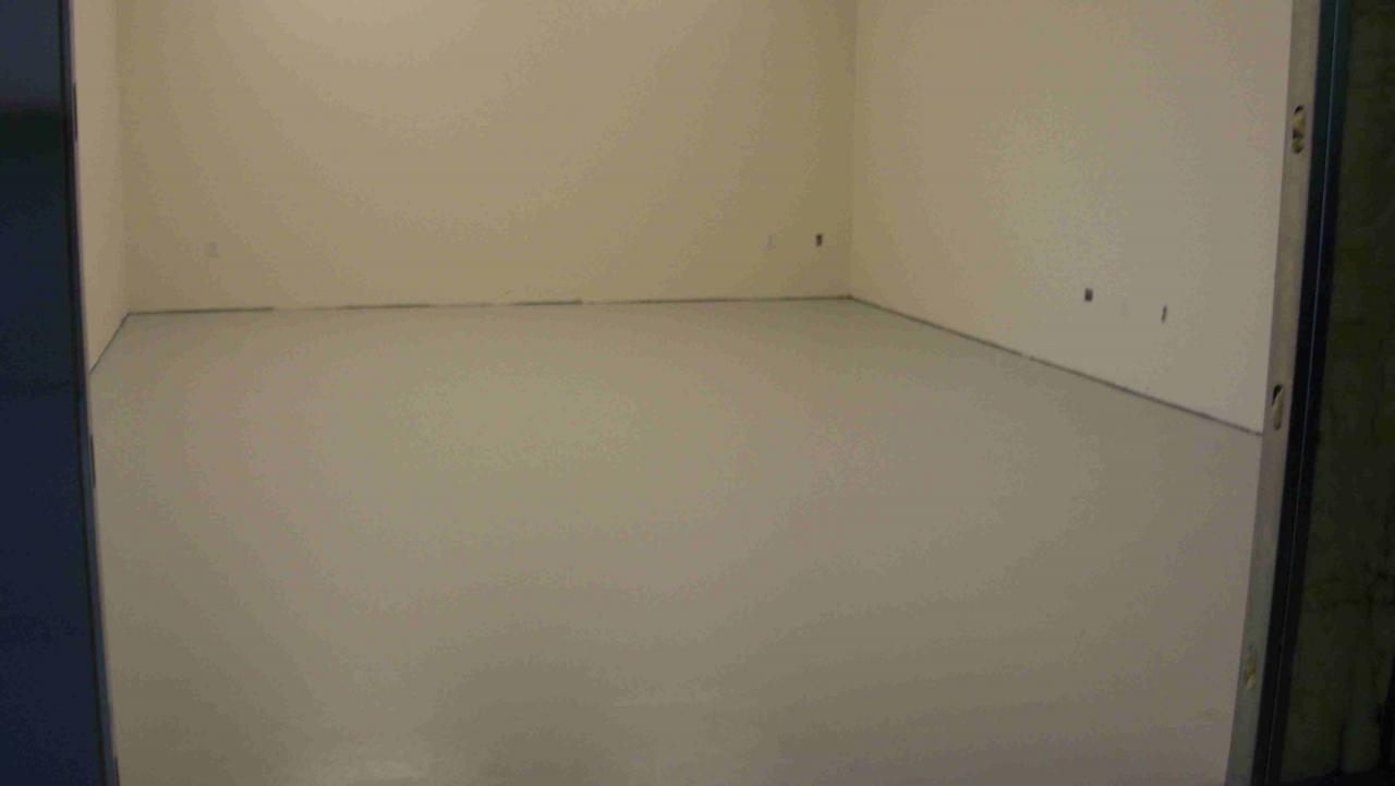 After - Finished 65 mil (1/16 of an inch) light grey broadcast aggregate solid color floor coating, for a lab application.